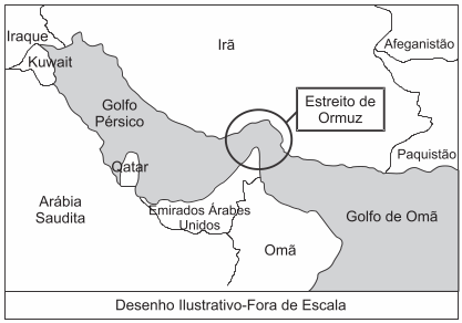 6. (Albert Einstein – Medicina) O Irã voltou a usar sua melhor arma na histórica disputa com os Estados Unidos. Não estamos falando de seu polêmico programa nuclear, tampouco de sua famosa Guarda Revolucionária, muito menos da controversa Força de Resistência Basij. Desta vez, trata-se de um acidente geográfico em sua costa: o Estreito de Ormuz.